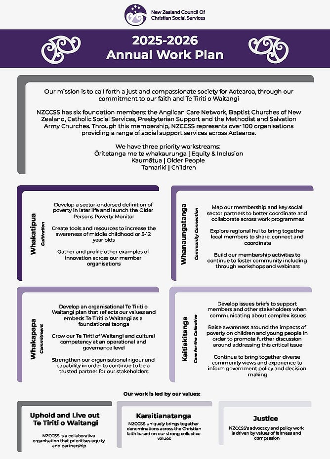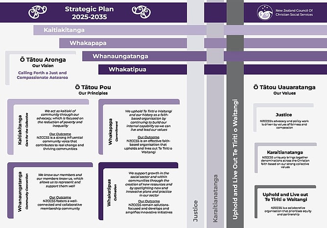 Together, these elements create a strong foundation to guide NZCCSS as they continue their work towards a just and compassionate Aotearoa.