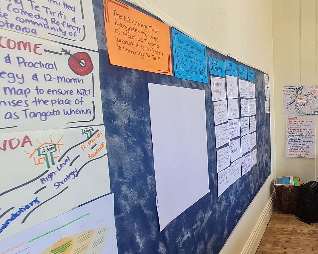 As part of their te ao Māori journey, the board of trustees sought to develop a Māori strategy to increase Māori representation in comedy, ensure cultural responsiveness, and give effect to Te Tiriti o Waitangi